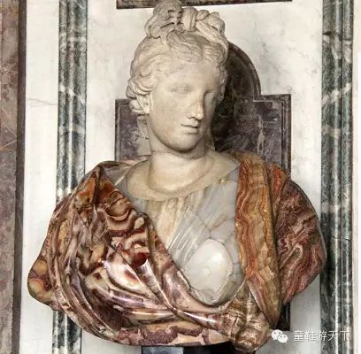 旁边两座戴爱娜女神半身塑像是红衣主教马萨林留给路易十四的。路易十四5岁继位,皇太后奥地利的安妮摄政,实际权力掌握在红衣主教马萨林手里。马萨林去世后,路易十四才开始亲政。