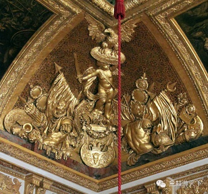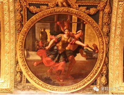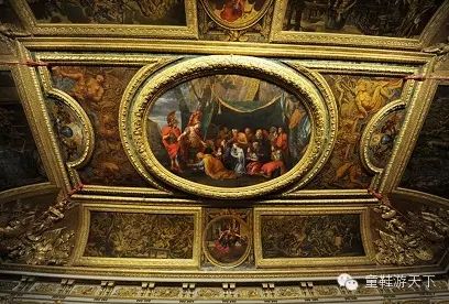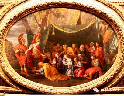 中间的拱顶画是法国画家亨利泰斯特林临摹战神厅勒布伦的作品《亚历山大宽恕被征服的亚美尼亚国王一家及其人民》