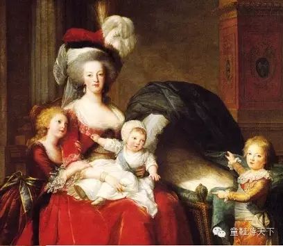 画中皇后玛丽.安托瓦内特抱着儿子路易十七,左边是大女儿玛丽.特雷莎,右边是因病死于1789年的皇太子路易.约瑟夫。