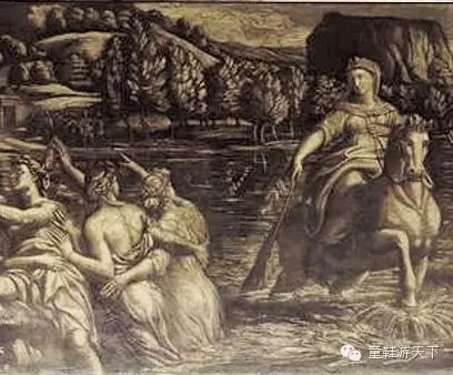 东面一幅是安托尼佩雷特作品《海佩斯克莉缇》海佩斯克莉缇是本都国国王密特里达提六世的第六任妻子,婚后始终陪伴丈夫骑马征战。