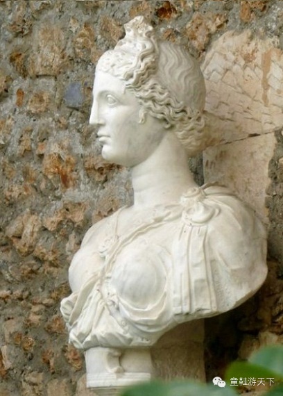 湖边小屋门前玛丽.安托瓦内特皇后塑像。