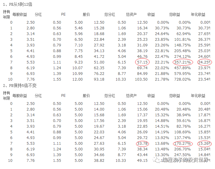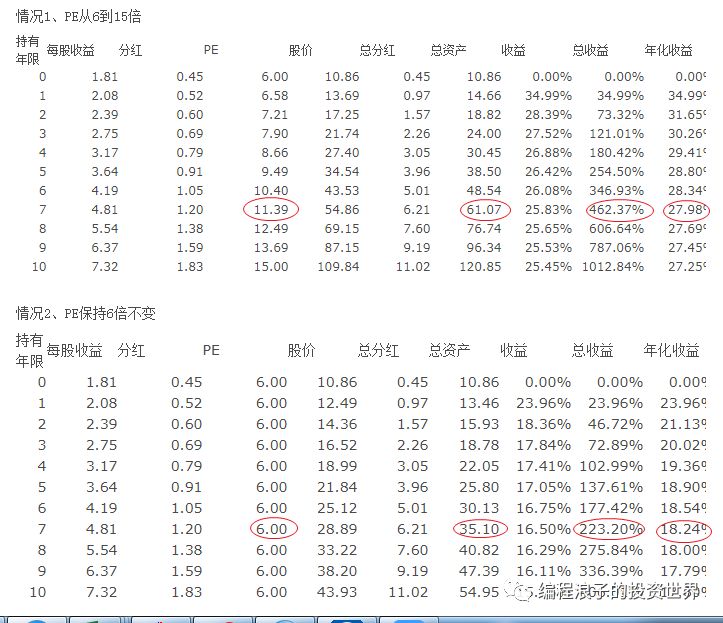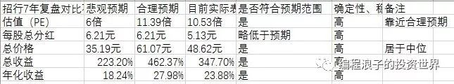 最终预期总价格(包含分红)第7年希望到35~61元,实际为48.62元(复权价),基本在一个中位数的位置。