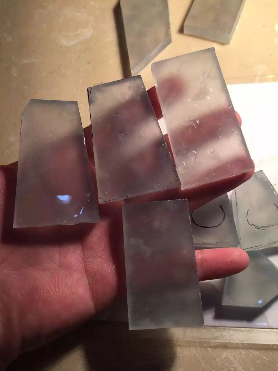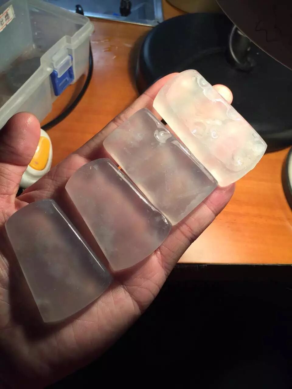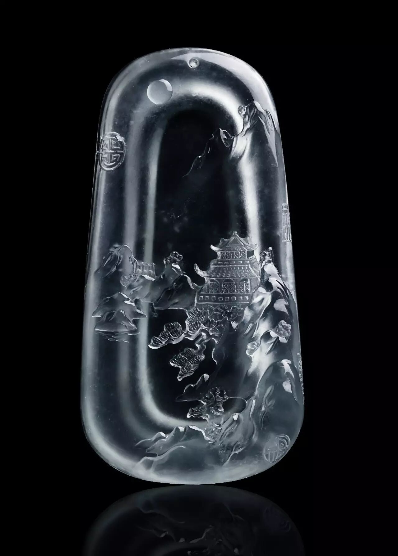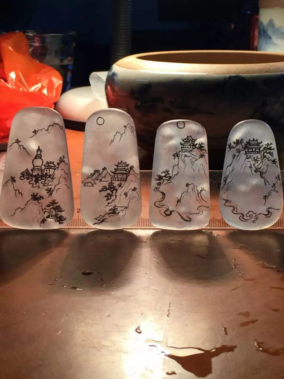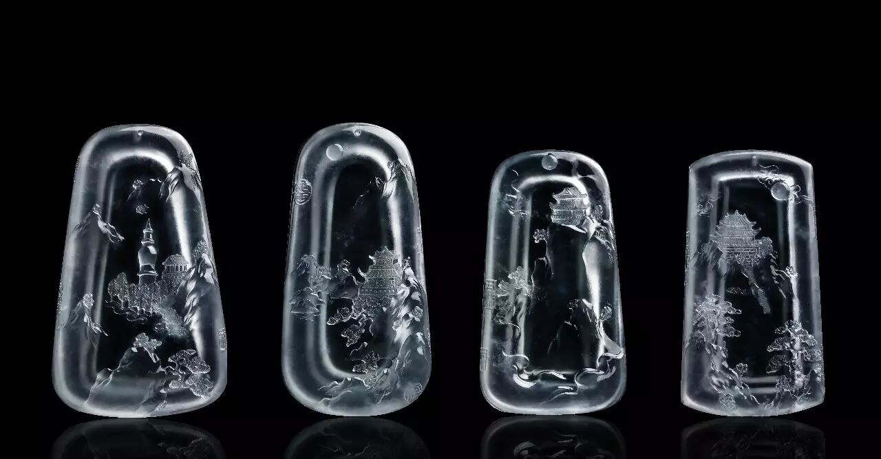 四块完整的牌子料,若是将中国佛教四大名山的盛景刻立其上,想必清莹通透的质地更能将灵山秀水的品性衬托出来~