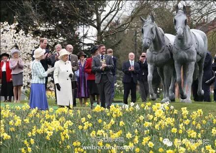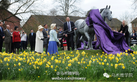 英国女王伊莉莎白二世骑术精湛,一生爱马,对英国皇家骑兵营的马儿们十分了解。作为她登基六十周年的献礼项目之一,一尊等比例英国皇家御用挽马青铜雕像于今年三月在英国温莎落成。该雕像表现了挽马“Daniel”和“Storm”的身姿,以纪念英国皇家御用挽马在各类庆典仪式中扮演的重要角色。