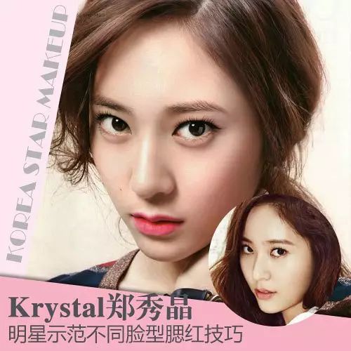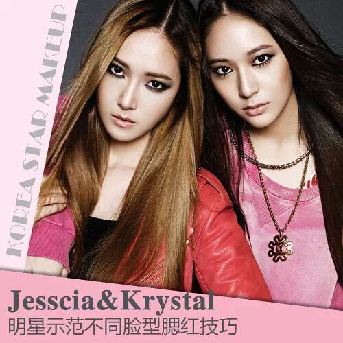 韩国天团姊妹花,隶属于不同团体的 Jesscia 郑秀妍和 Krystal 郑秀晶,两姐妹都拥有稍微修长的尖尖瓜子脸,已经算比较完美的脸型了喔 !怎么打腮红才能突出她们的脸型优势呢 ?