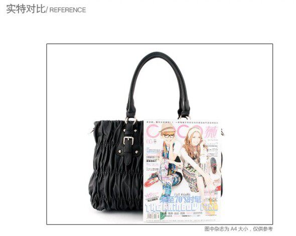 9.包包大小,也就是实物对比。实物对比需要根据包包的属性和顾客需要来拍摄,比如一个学生用的包,人家关心的是里面能装几本书,然后还有没有位置放伞和日用护肤品,你就不能放本书在包包底部吧;例如是钱包,顾客关心的是里面能放几张卡,能不能放下钥匙,手机,能装多少钱等等,你就不能用A4的书做参照物了吧。实物对比的仔细分析,是因为顾客不会去看你的表格属性数据.记住,图形图片的植入能力比文字高N倍。