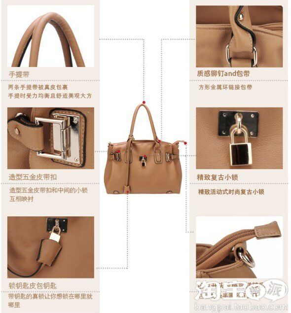 7.细节展示。我是觉得把产品正面侧面背面和细节同时展示,客户体验度会高一些,因为把细节全部放到一起,复杂一点的包包,细节图展示很多人都不知道是包包哪个部位,要让顾客自己去联想,而不是顺着思路走的话.....后果应该是购买欲望又降低一成-.-!如果正面接着就是正面部位的细节,侧面接着就是侧面部位的细节,这样会更容易联想一些,不需要过多的思考和仔细的研究。