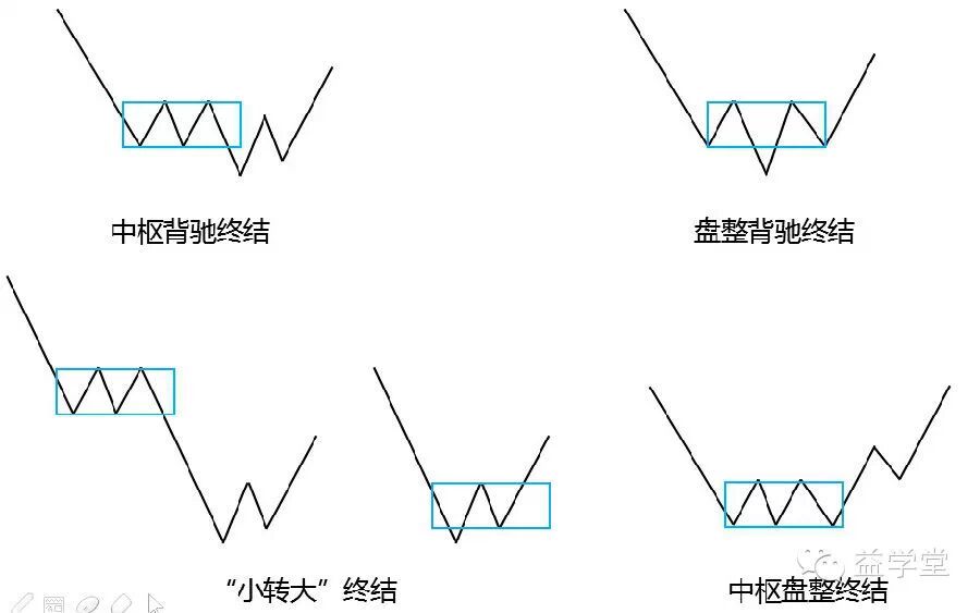 4、小转大终结的买入法:第一类买点,直接在小周期背驰处使用底分型停顿法精确定位;或者第二类买点,回拉笔底分型停顿法精确定位,或次级别放大再次使用第一类或第二类买点定位的方法(区间套);