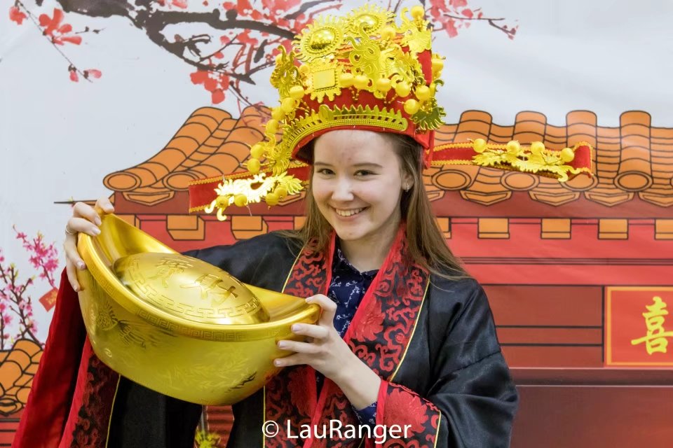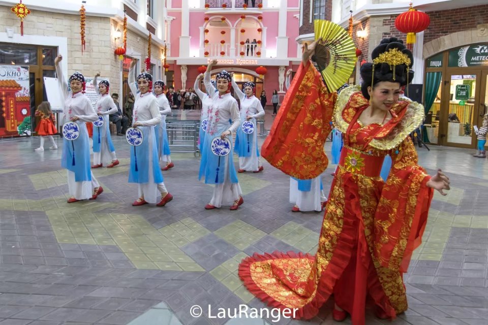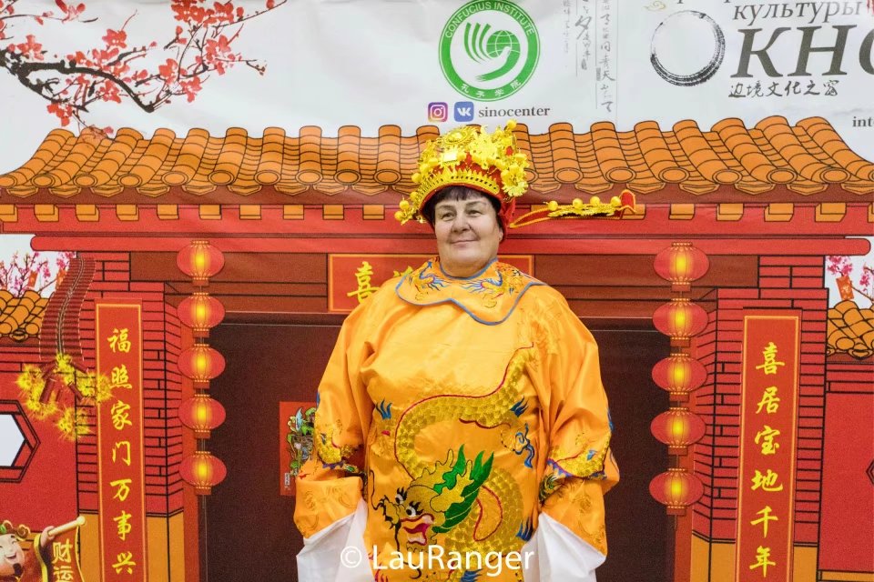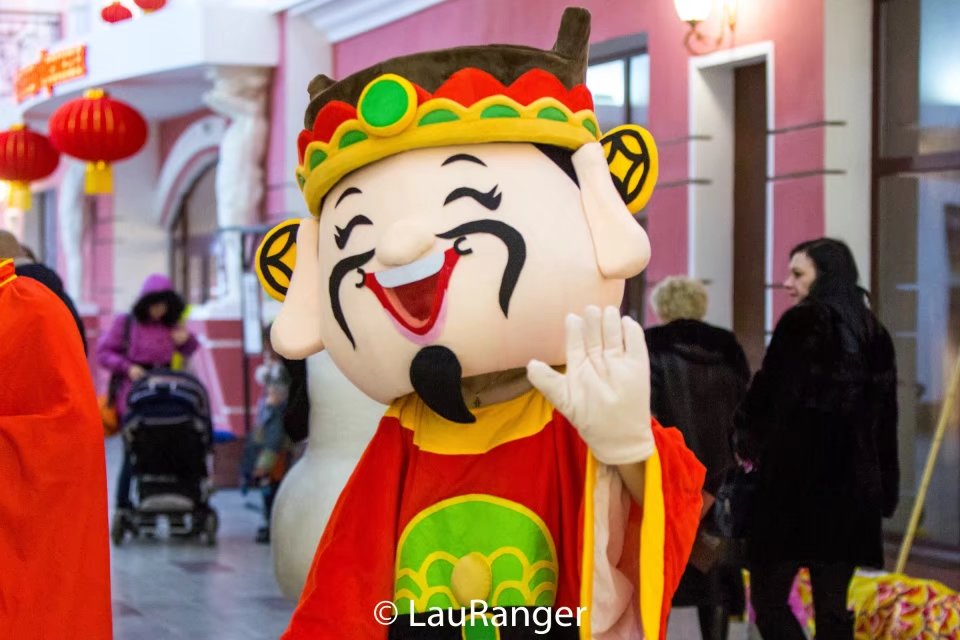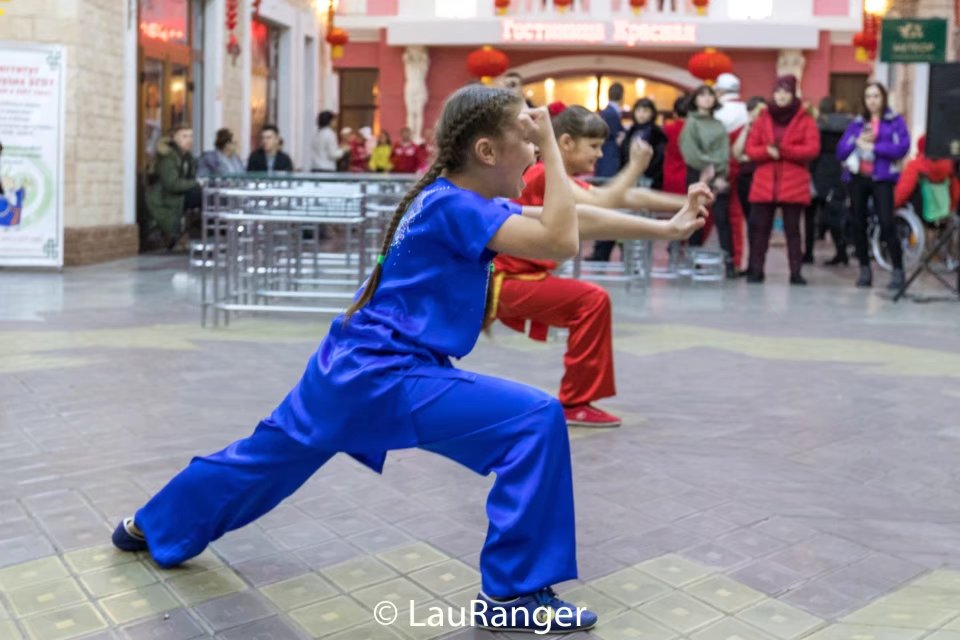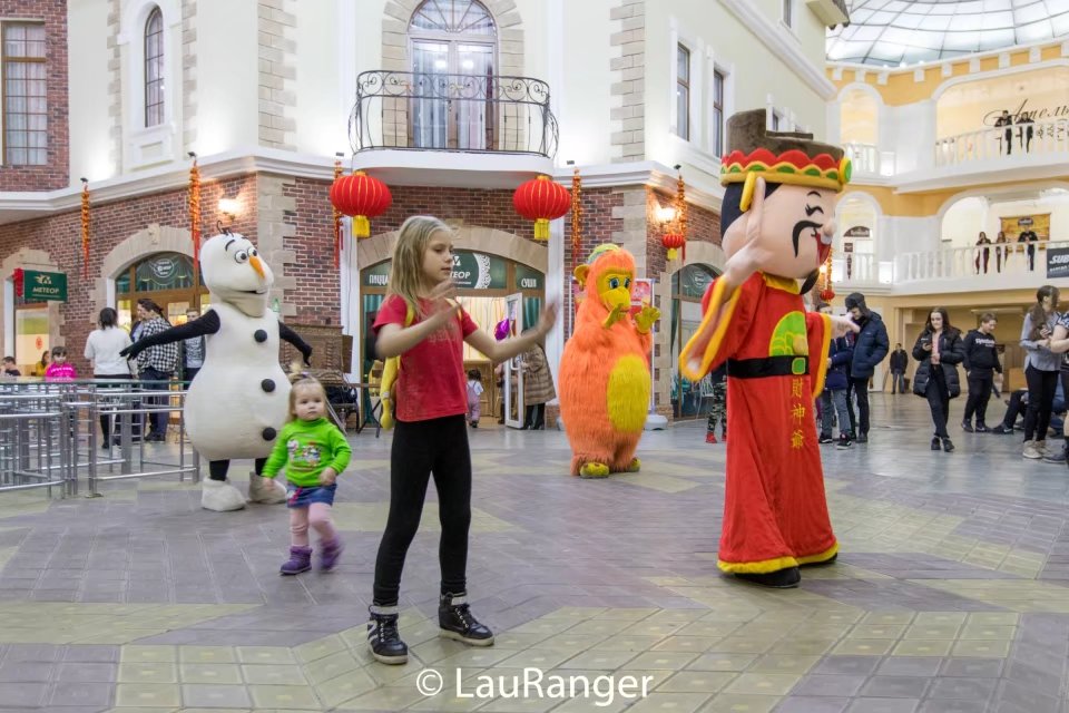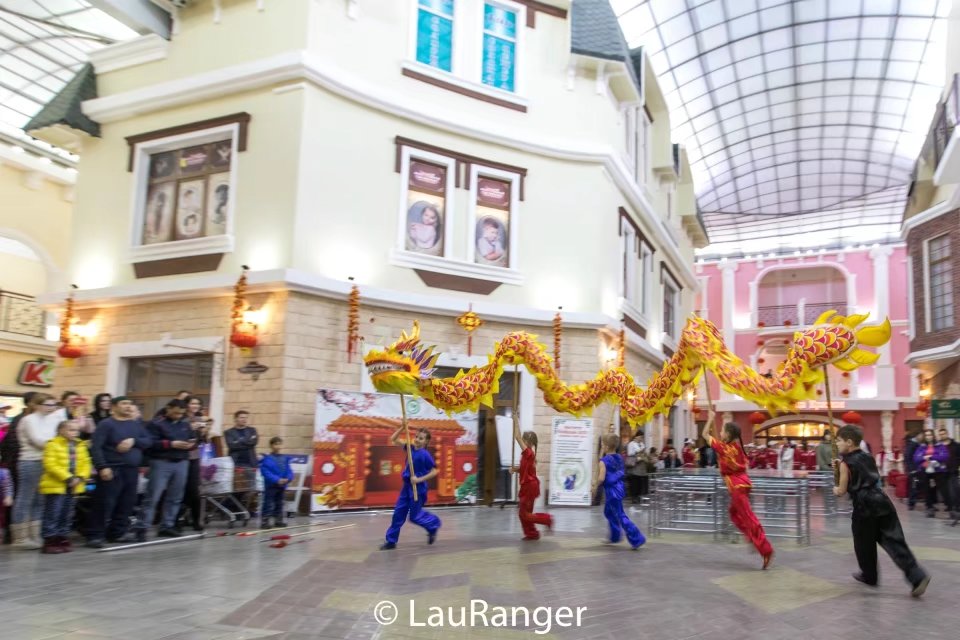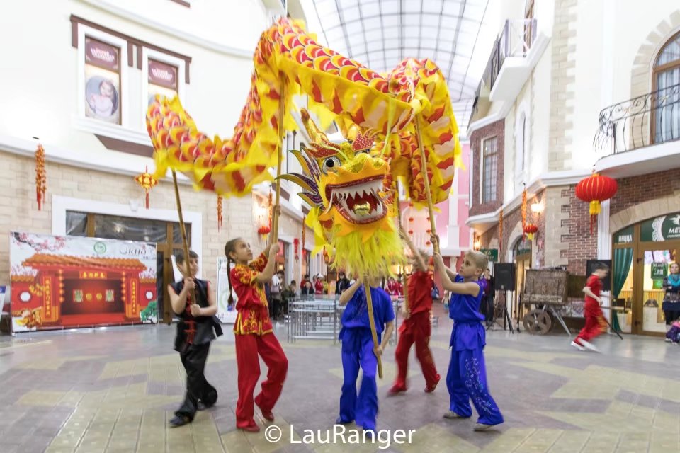 上下飞舞的巨龙,憨态可掬的熊猫,热闹喜庆的秧歌,精彩绝伦的武术表演。百余名俄罗斯青年组成的表演队伍往来穿梭于群岛古城区,传统的中国民族服饰在欧式建筑背景映衬下,分外抢眼。来自俄罗斯的“洋”悟空手舞金箍棒,霸气十足。随处可见的年画展板讲述着送灶爷、贴春联、年夜饭、赏花灯等传统文化习俗,吸引大量过往行人驻足观看。大型充气生肖狗和新春中国门的摄影背板尤其受俄罗斯民众喜爱,纷纷换装中国传统服饰合影留念。