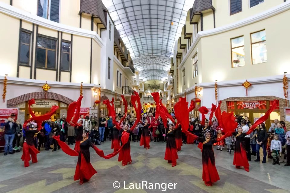 贴窗花、挂年画,接财神、扭秧歌。在中国传统节日春节即将到来之际,与中国黑龙江省黑河市毗邻的俄罗斯阿穆尔州首府布拉戈维申斯克市群岛购物广场张灯结彩,年味十足。2月10日,黑河市与布拉戈维申斯克市共同举办一城两国•中国“年”迎新活动,近千名中俄边境民众载歌载舞,以纯正的中国传统习俗共同迎接新春的到来。