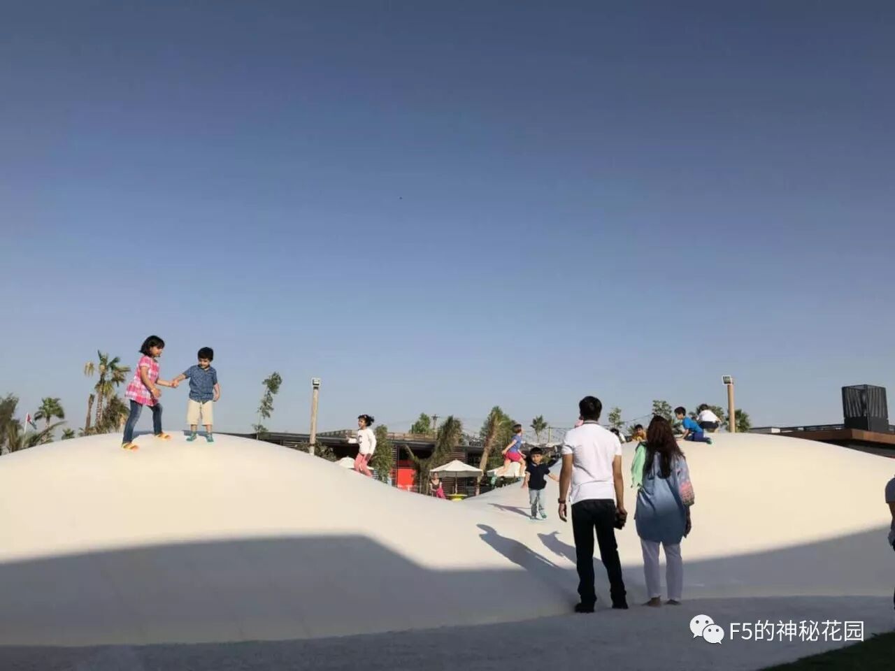 带孩子在外面玩,是那种很大型的跳床,我这里给孩子们换专用袜子呢,就听到边上一个爸爸很大声的用阿拉伯语对着跳床里正在蹦跶的一个小孩子喊道:“你是不是又没有穿内裤?”