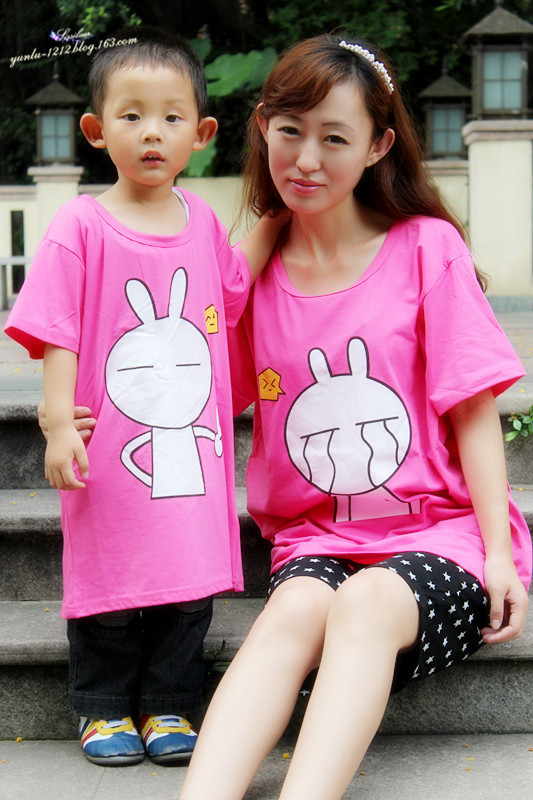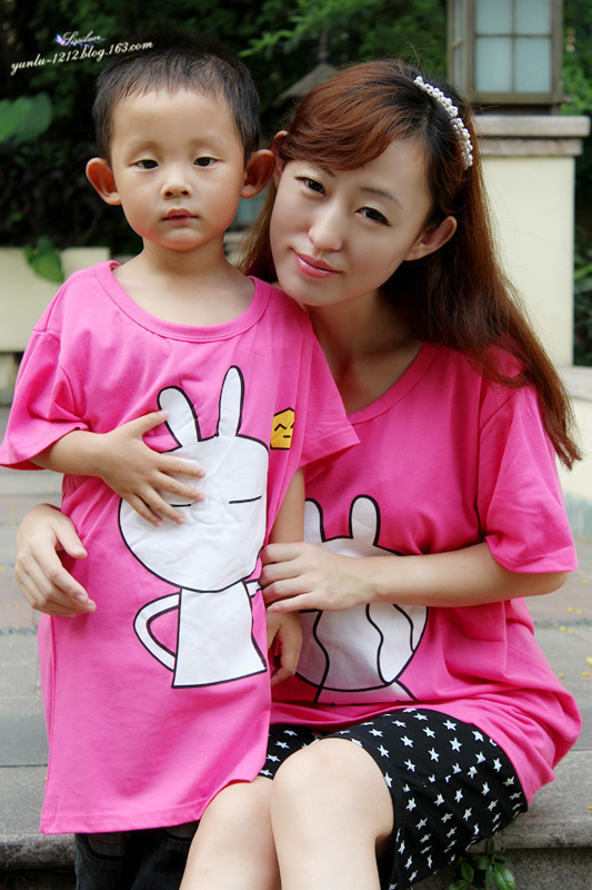 儿子穿上像袍子,但是还是很喜欢这件可爱的兔子T恤