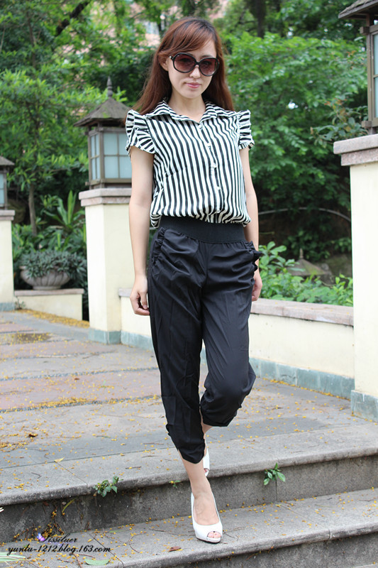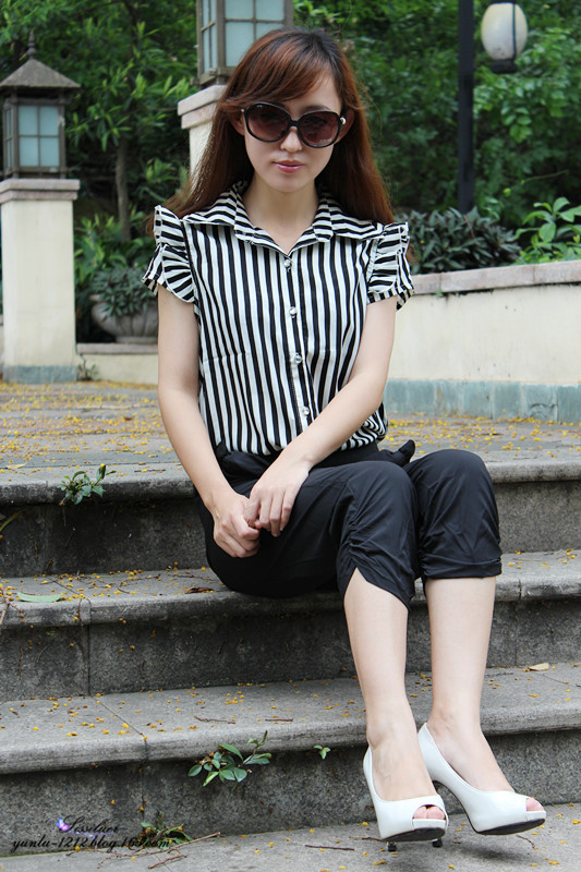 黑色白色的经典搭配,黑色裤子还是很耐脏地呵呵