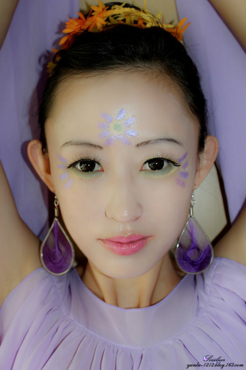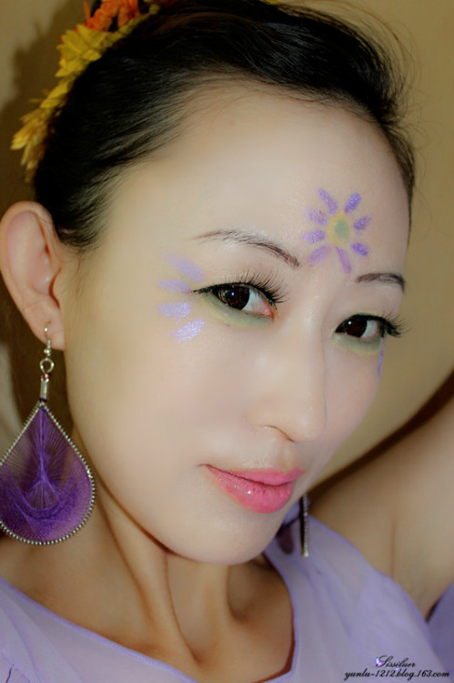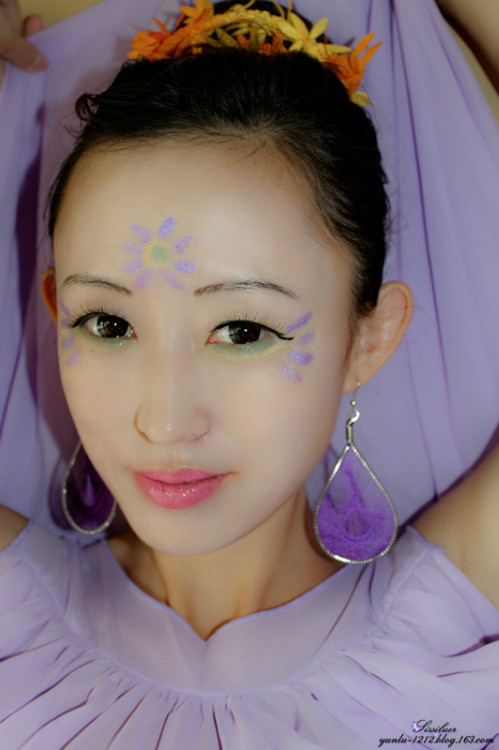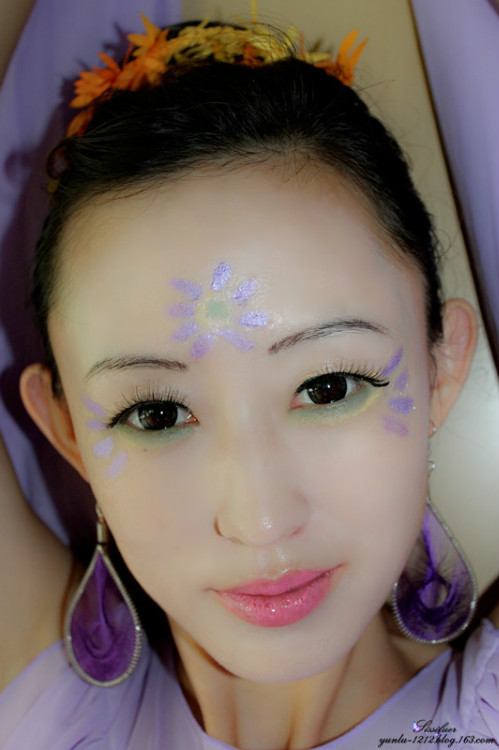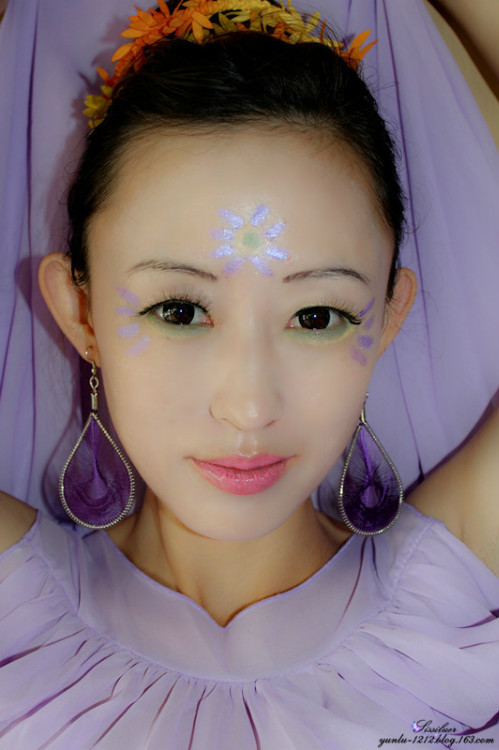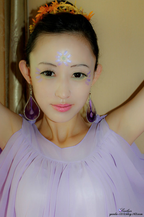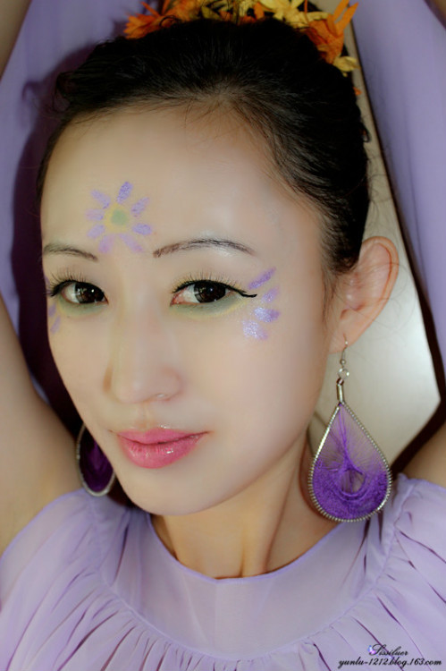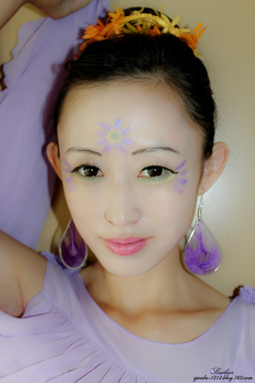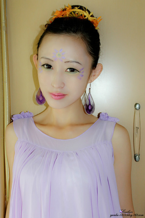 搭配紫色的耳环,紫色的裙子,宛如格桑花一般美丽