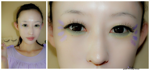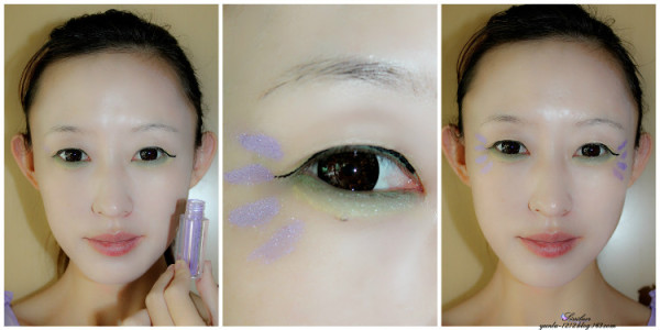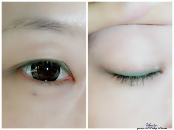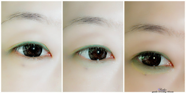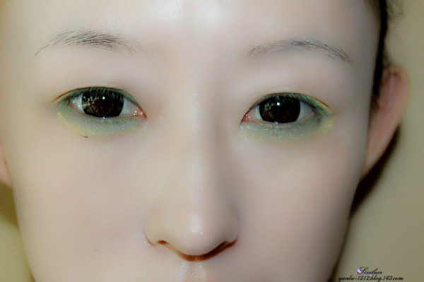先用绿色眼影打底,最娇嫩的颜色,只要涂抹过半的效果就好了