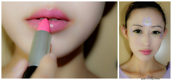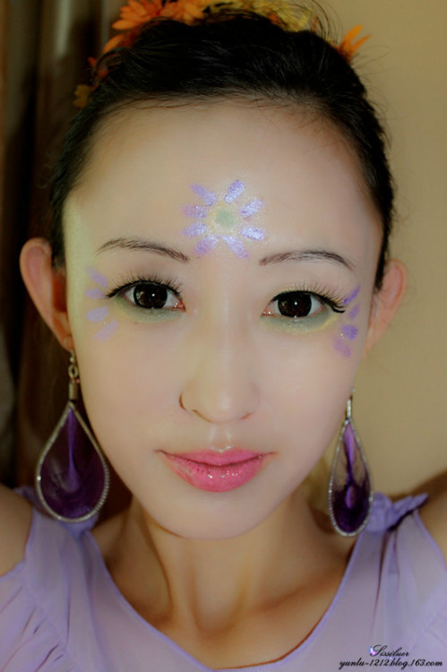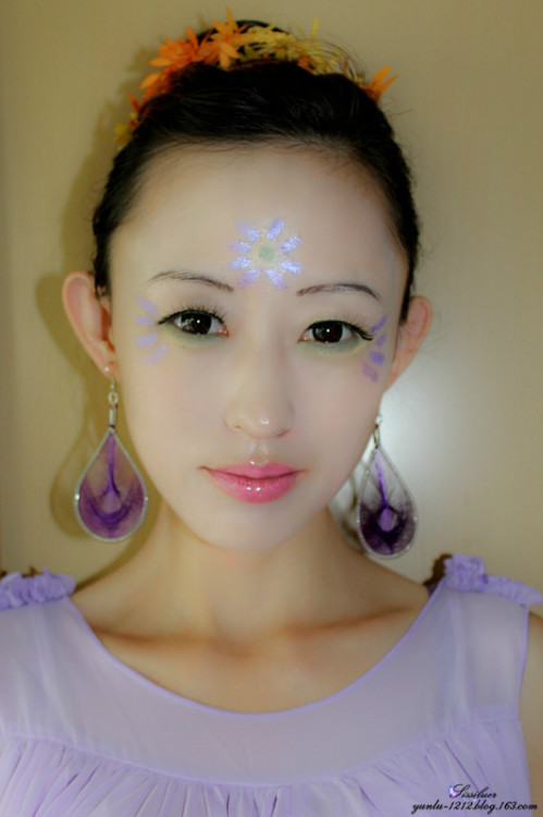 眼部采用了黄色和绿色,象征格桑花黄绿色的花蕊