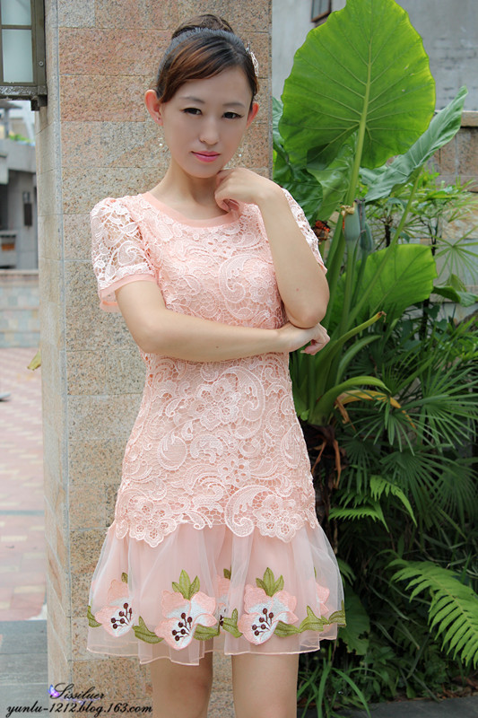 蕾丝的面料一直是女人的最爱,舒服的粉色,修身的设计,