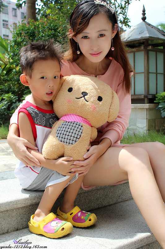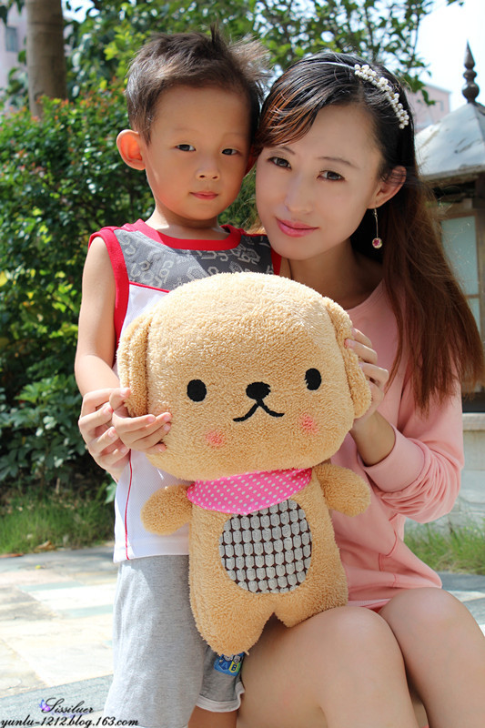 本人妈妈级人物了,带着可爱的宝贝和饼干熊