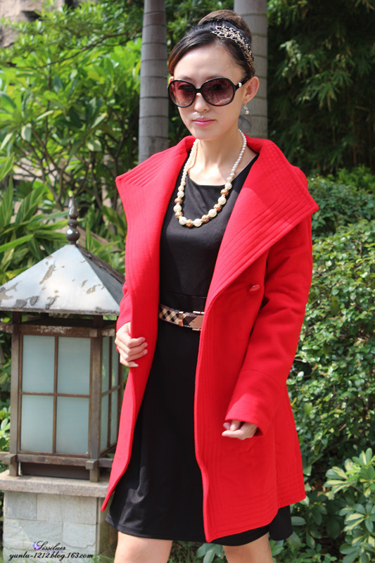 呢子材质的连衣裙,用来搭配内搭来衬托它的美丽