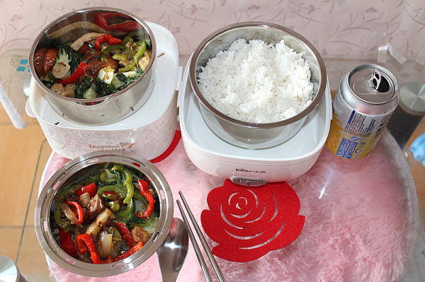 饭堂的饭菜不可口,但是回家又远,准备了这款电热饭盒,做好午餐随身带