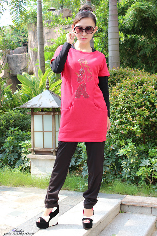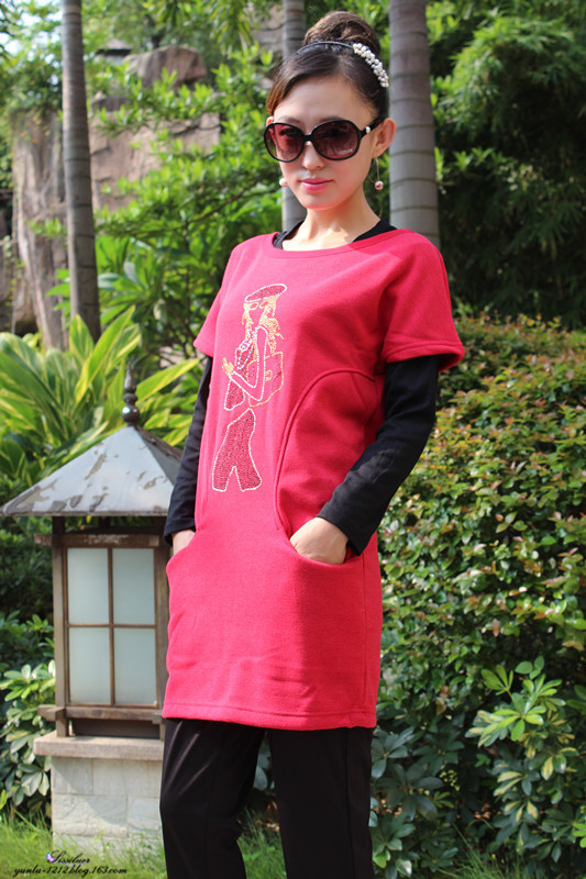 整体搭配休闲随意,黑色红色的搭配,三件的不错的感觉