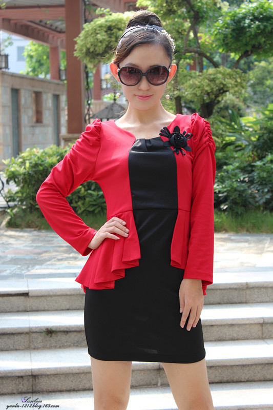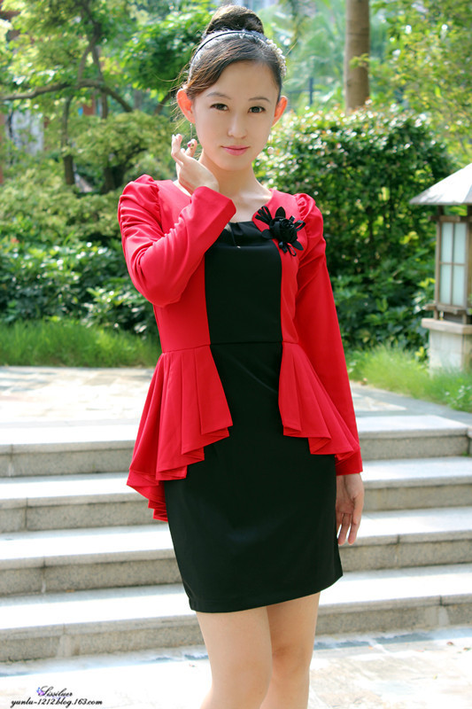 ol的通勤职业风格,别致的就是在于衣服的燕尾款式的红色了