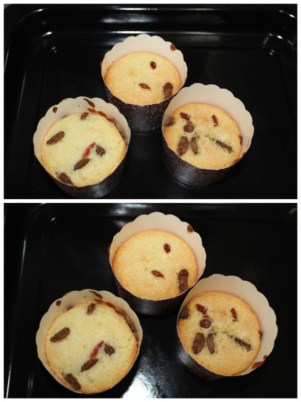 第二款,同样的配方,放入模杯中,放入2分之一杯的数量,撒入枸杞和葡萄干
