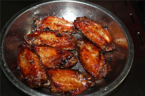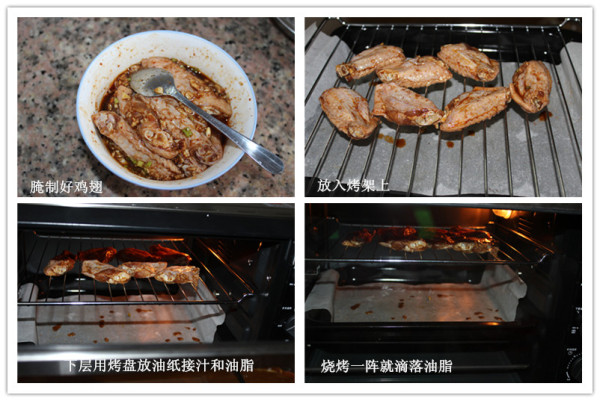 第三款奥尔良烤翅,首先用酱油,葱、蒜末、姜末等调质好配料,并腌制鸡翅30分钟左右,烤制时间为20分钟