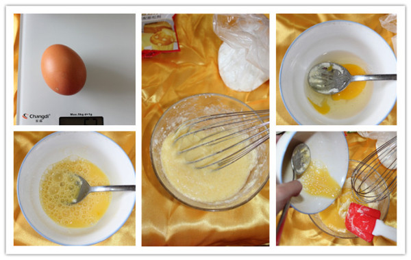 鸡蛋一个,方便期间直接取用,并搅拌出泡沫,倒入之前的奶油糊中,搅拌成糊状