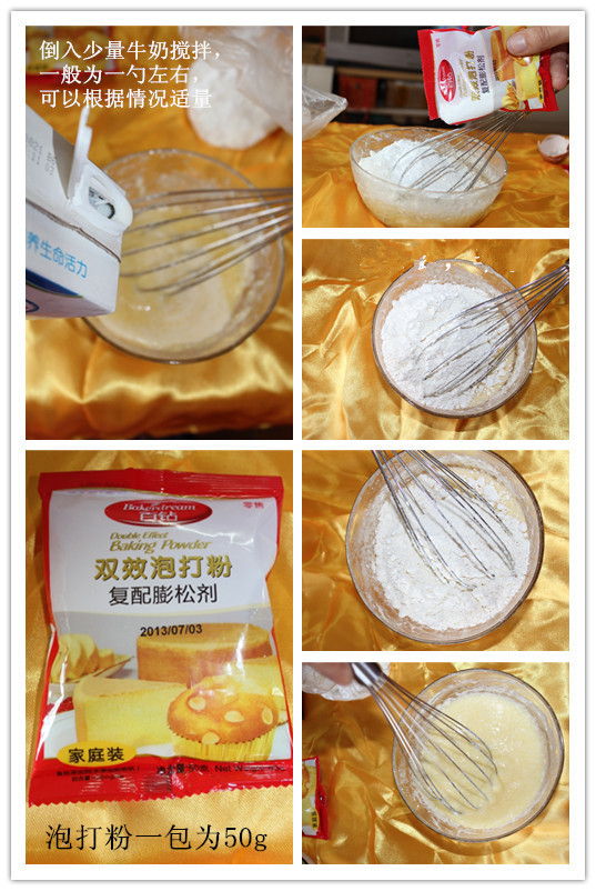 泡打粉可以少放一些,半勺,根据情况加适量,也可以用勺子测量后放入,