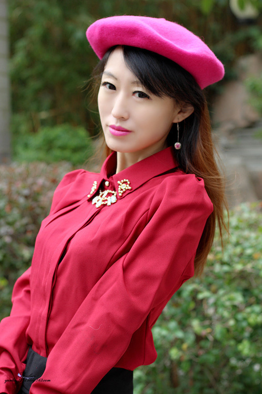 枚红色的贝雷帽,搭配起来也是很不错的呢