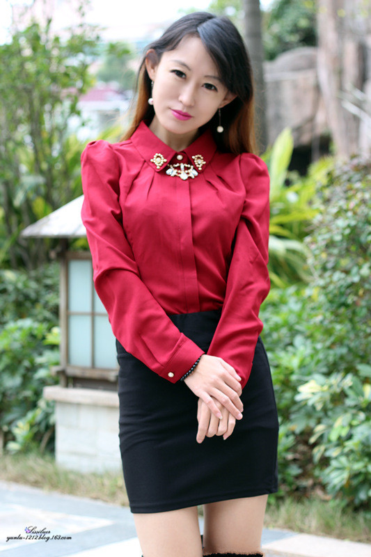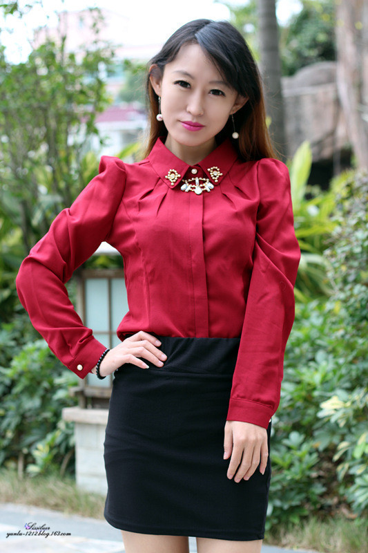 很职业的一款衬衣,艳丽的红色,让人觉得很舒服的感觉