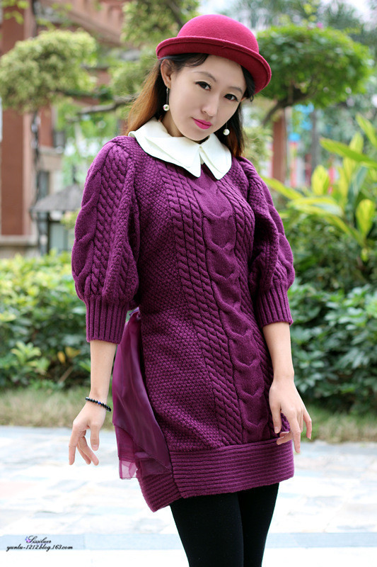 这款是毛衣裙是当下很流行的,配上黑色的高腰靴子,显得更加的好看