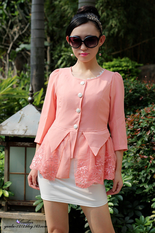 上面有蕾丝的效果,蕾丝这几年的主打,总是让人感觉女人味十足的感觉