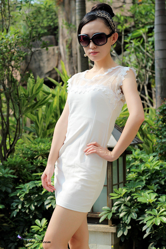 蕾丝的白色裙子,很喜欢胸前的蕾丝的设计,修身的设计