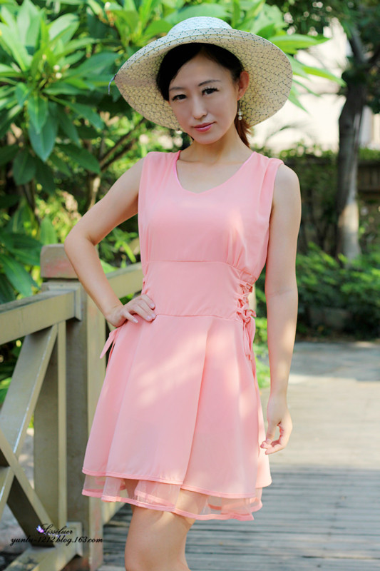 纱织的下摆,层叠的设计,腰部的丝带更加衬托出完美的曲线