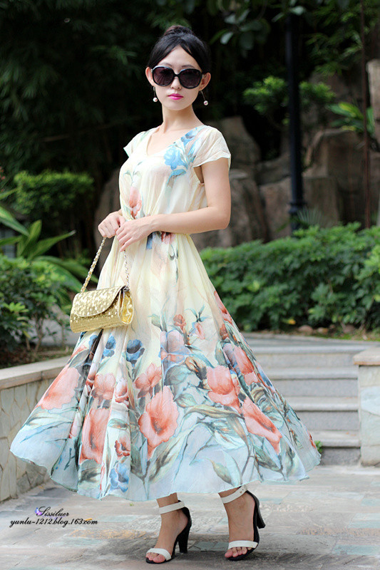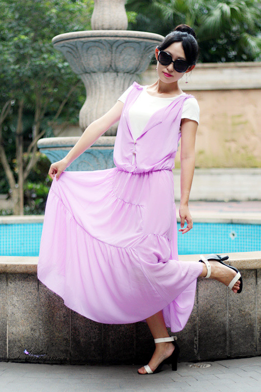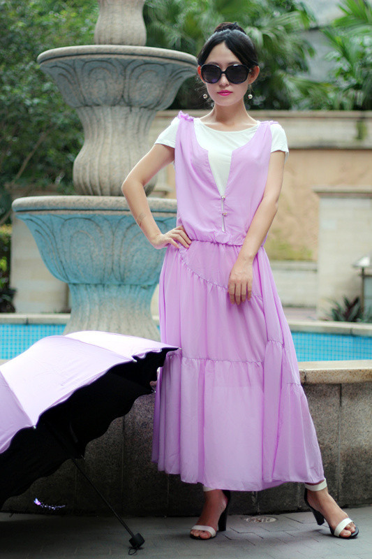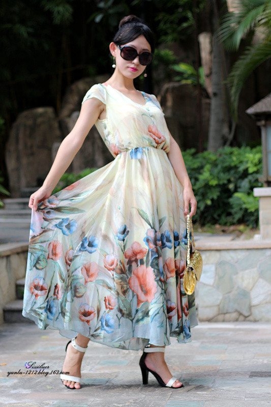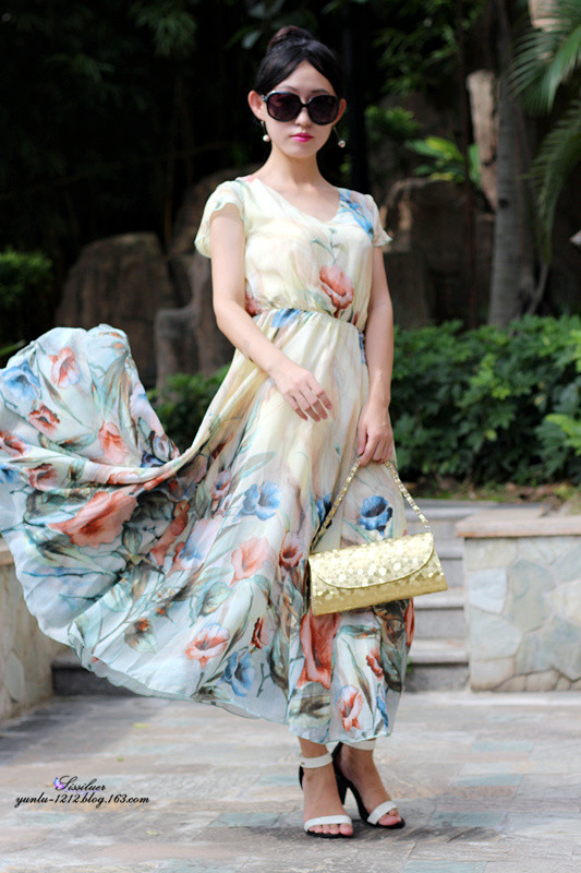 飘逸的雪纺,外出穿很不错,不错记得打上遮阳伞