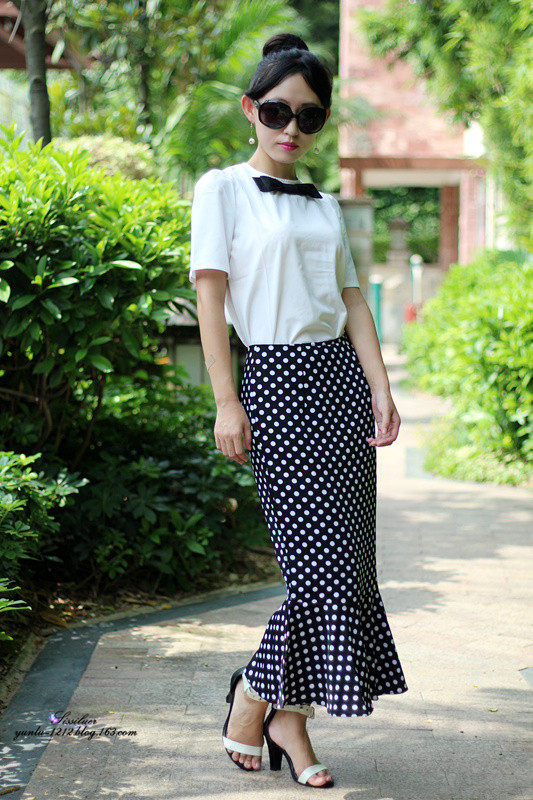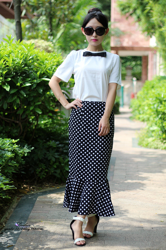 明星同款的上衣和鱼尾裙,更加突出下摆的线条
