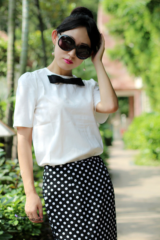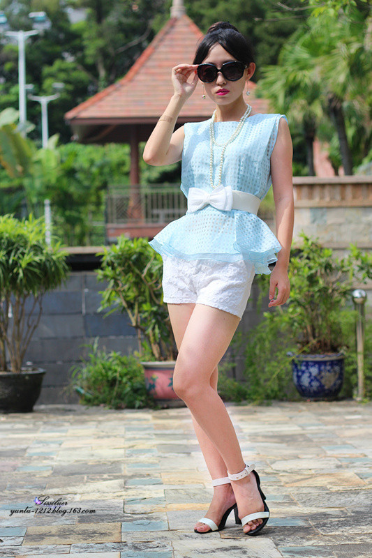 【黄色雪纺连衣裙】 【蓝色欧根纱上衣】 【蝴蝶结衬衣】 【波点鱼尾裙】 【白色花色连体裤】