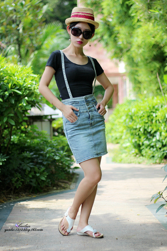 修身的牛仔背带裙,高腰的设计,穿出女人活力俏皮的一面