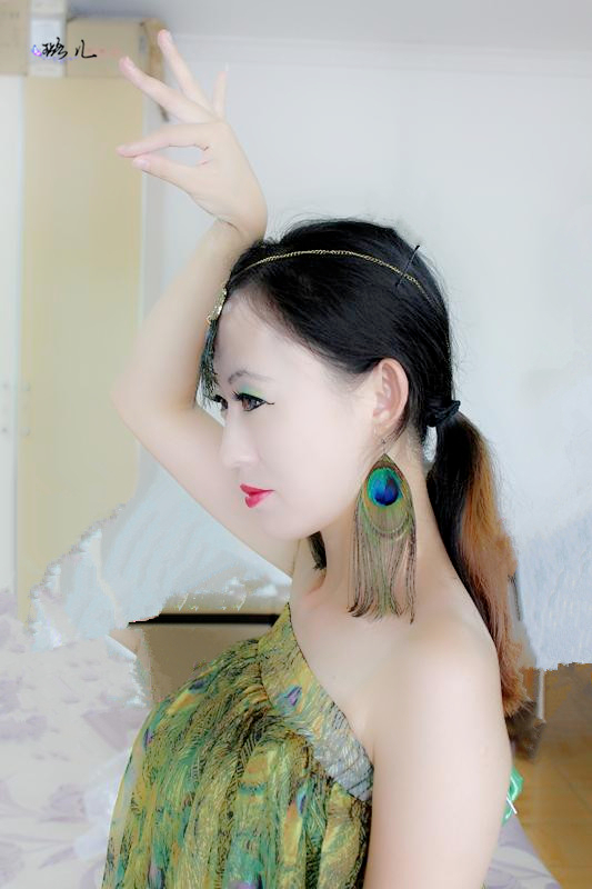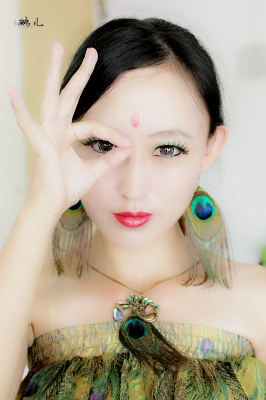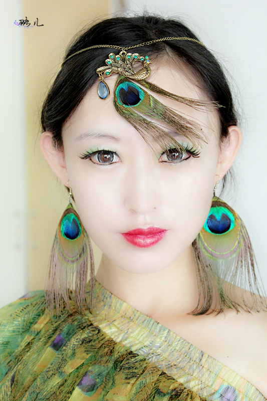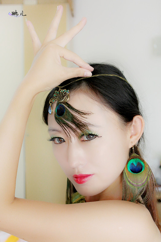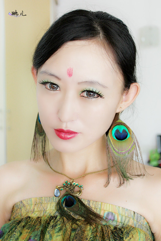 看到这款孔雀彩妆,很喜欢,自己延伸着打造了一款独一无二的孔雀妆