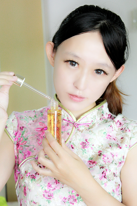 首先我会加倍用量,用6滴黄金复原蜜做密集修护按摩。其实很简单哦,先把双手搓热,然后运用掌心的热量激活产品的营养成分,双手从面部中央向外侧沿下颚线至耳边,再从颧骨像太阳穴,最后由前额中心向外平滑肌肤,这样简单5次按摩手法非常有助于肌肤吸收养分,让肌肤更加紧实细腻呢。