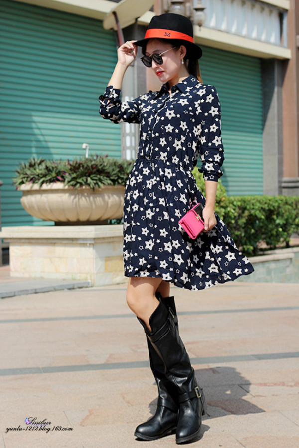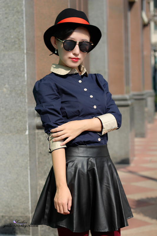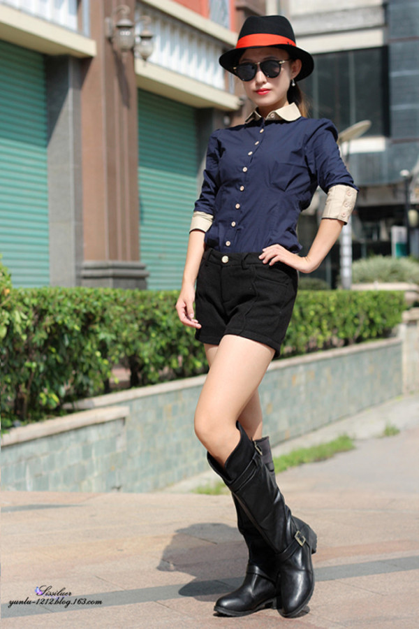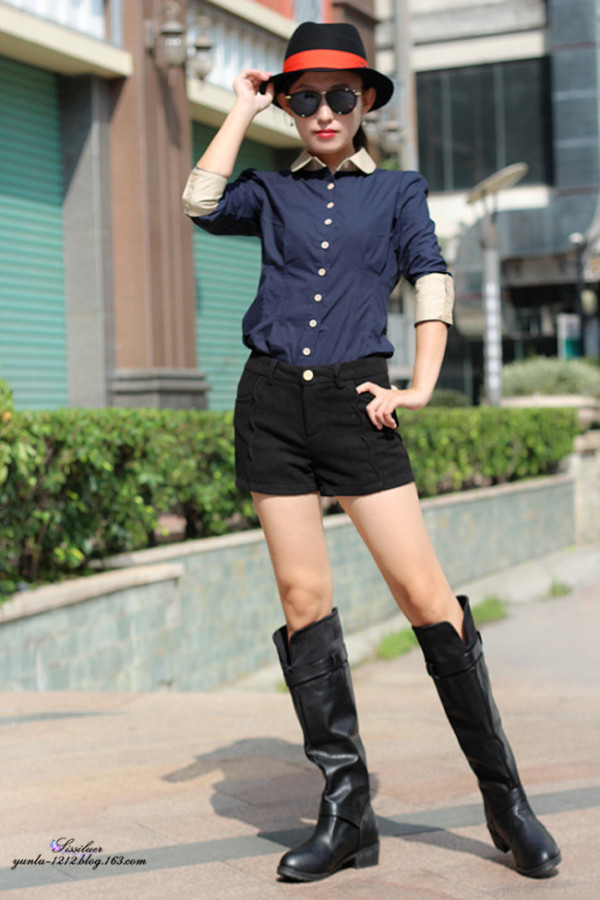 英伦复古的装扮,英伦的靴子,短裤,皮裙都是可以百搭的感觉,把握时尚的气息的味道