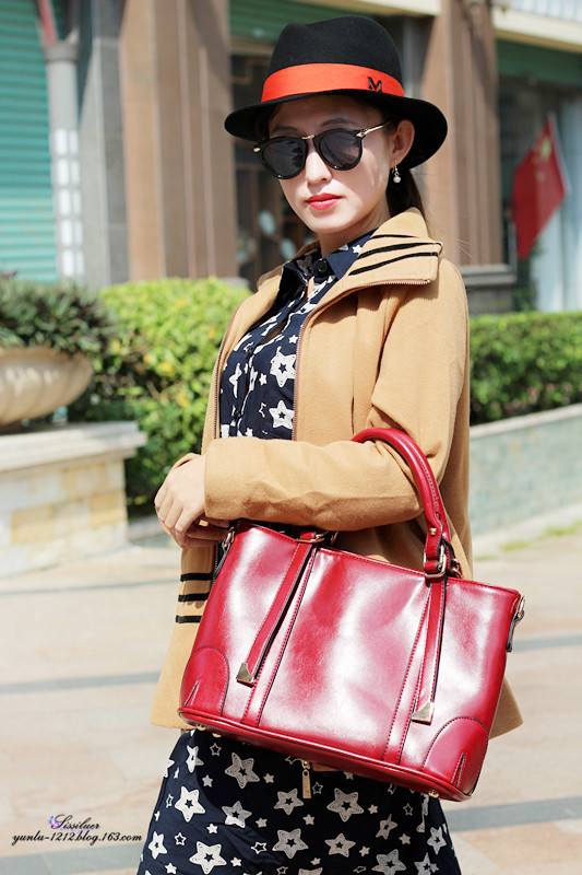 而是枚红色和黑色的撞击,简单的款式也可以穿的很高调