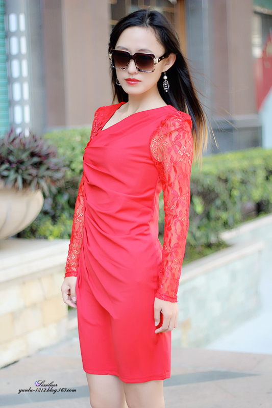 过年了,来件红色的裙子吧,蕾丝,来了,长袖的打底,单穿,都是让你能成为宴会的主角