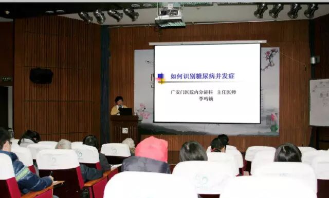 2016年12月5日,广安门医院健康大课堂如期举行,本节课由我院内分泌科专家李鸣镝讲授《如何识别糖尿病早期并发症》,并与患者现场互动,进行相关答疑、咨询。