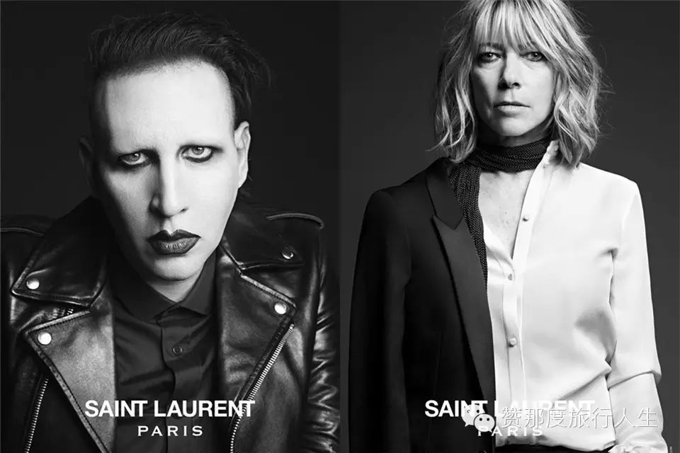 最终这次宣传活动一举囊括了Sonic Youth乐队主唱/吉他手Kim Gordon、Courtney Love、工业金属大神Marilyn Manson和独立摇滚新晋乐队Ariel Pink。Hedi喜爱的黑白色调配上YSL现在标志性的机车夹克和曾引以为傲的吸烟装,向世界宣布一个新的圣罗兰时代的到来。