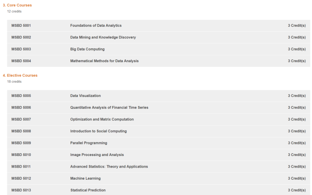 港中大计算机科学硕士课程不仅包括大数据的内容,还涉及营销、博弈论和决策分析。从课程结构上来看,通识性为主,并且能够让申请成功的学生学到计算机相关知识的同时还能够涉及管理的部分内容。