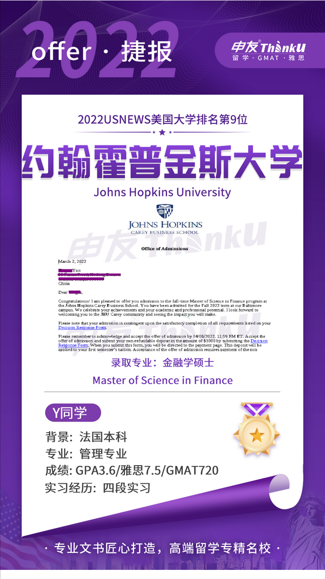 2018年,Carey商学院很多项目逐步从非STEM 转为STEM项目,这对于想要留美工作以及想拿OPT身份的同学来说是个不错的机会,申请难度也开始有所提高,在刚过去的22Fall申请季,相信很多同学也感受到了,能进入Carey商学院的学生背景不是985就是211,均分都不俗,甚至还有不少背景很不错的学生收到了拒信。