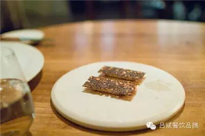 第三道,脆皮猪肉皮和黑加仑。Jose说这道菜和西班牙经典的脆猪皮很像。